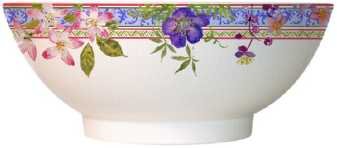 Again and again, you will reach for this romantic and versatile medium-sized dish. For serving pasta to bread, this serving bowl is just the right size. Decorated around the top rim with a romantic tumble of florals, it measures 10.75 inch in diameter.Made of high quality faience earthenware. Dishwasher safe, microwave safe at low settings. Made in France.