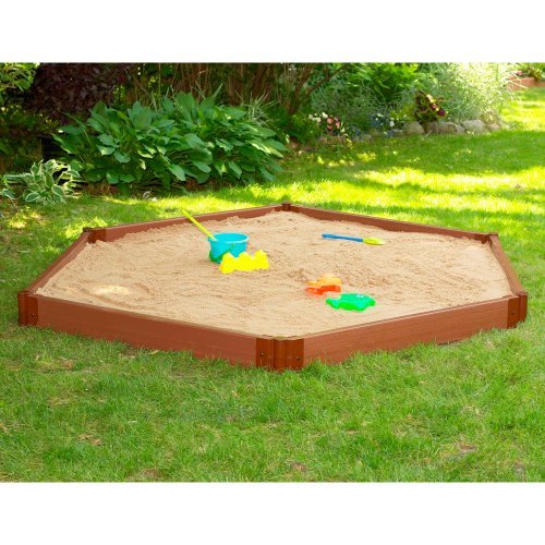 Large hexagonal sandbox is six inches high with a single slat perimeter crafted in recycled plastic lumber with stakes and corner brackets. Eco-friendlyNever rotsEasy to installSplinter and toxin freeSand estimated usage: 16.2 cu ft, .6 cu yards or 1700 lbsMade from recycled plastic84 in. L x 96 in. W x 6 in. H (40 lbs.) There is nothing like a clean tidy sandbox to keep children of all ages safely occupied for hours and hours. The 6" high hexagonal sandbox is assembled in an hour or so, using the Frame It All joints and four feet long composite plastic timbers, which never rot, splinter and warp or lose their gorgeous natural wood grain finish. Don't forget to also purchase the heavy duty customized sandbox cover to keep it clean and dry.